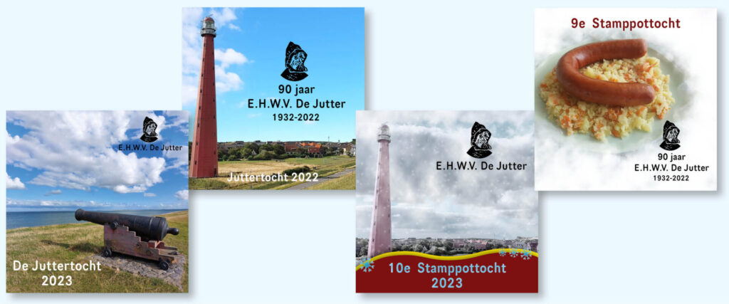 At the end of the walk, each walker receives a commemorative plaque. Before each tour I take photos that match the hike. I always choose a summer photo for the ‘’Juttertocht’’ in September and I choose a winter photo for the ‘’Stamppottocht’’ in October. If I have not been able to take the perfect photo, I work on another photo in Adobe Photoshop