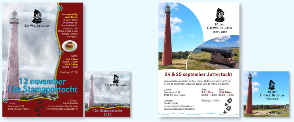 EHWV De Jutter is the first walking association from Den Helder in the Netherlands. For the association I make various reminder pictures for the hiking booklets and flyers. I also designed a calendar for 2023.